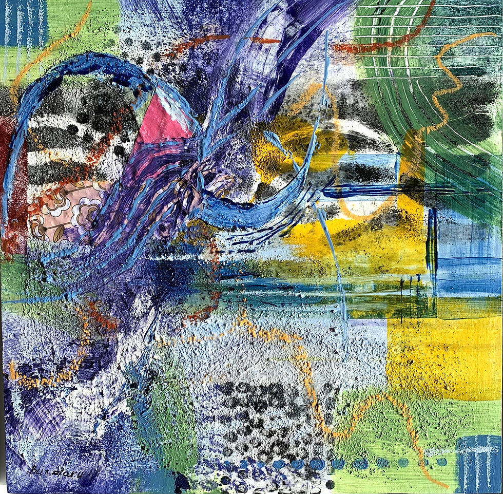 This mixed media painting on canvas is created using a combination of image transfer and acrylic paints and mediums together with textured papers. The artwork comes with a wire on the back for hanging, it is signed on the front and has title, date, artist name and a signed certificate of authenticity from the artist on the back. Size: 7x5 inches framed Artist: Denise Buisman Pilger
